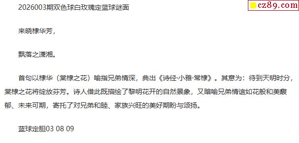 > 26年福彩双色球003期 白玫瑰定蓝球字谜